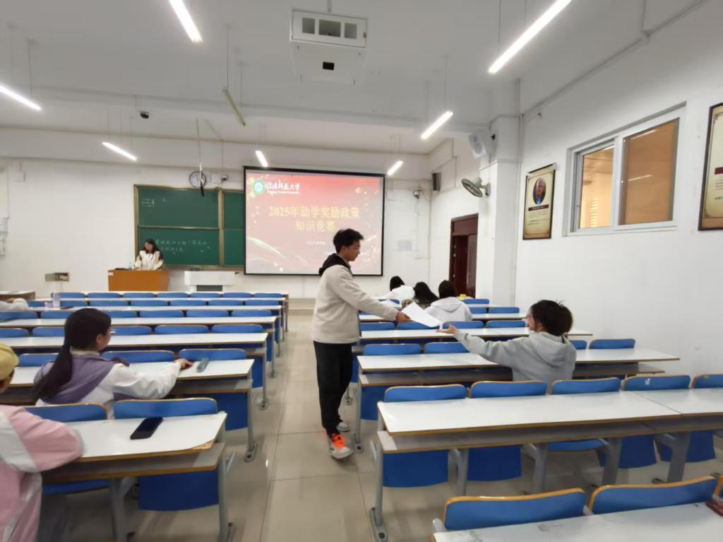 3 月 22 日 18:00 至 19:00,信阳师范大学学生工作部(处)资助管理中心携手韦德(中国)体育联合举办的信阳师范大学第一届“资助育人・放飞梦想”资助政策知识竞赛,在谭山校区社会科学楼324、325 教室顺利开展。本次竞赛面向校本部全体学生。