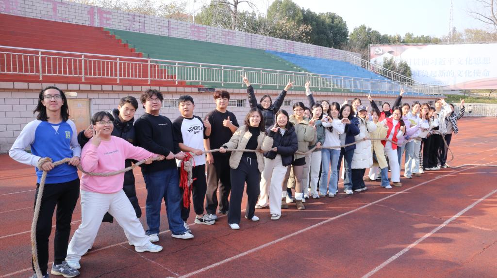 活动设置了“五人四足”“不倒森林”“搭桥过河”“抢凳子”“拔河”五项兼具趣味性与协作性的项目。在“搭桥过河”中,同学们精准衔接、快速推进;在“五人四足”中,共同研究提速方法,聚力同心、默契配合;“不倒森林”和“抢凳子”项目紧张刺激、笑声不断。压轴的“拔河”比赛将现场气氛推向高潮,呐喊声、助威声此起彼伏,展现出学生们不服输、勇拼搏的青春底色。