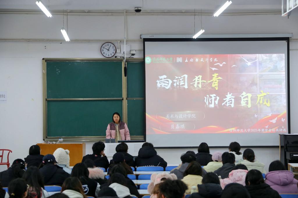 美术与设计学院2023级员嘉琪以“雨润开青,师者自成”为主题,从学业发展、科技创新、社会工作和综合素质提升等方面,讲述了自己在大学期间坚持向阳而生、全面发展的奋斗历程。她鼓励同学们在实践中锤炼本领,在挑战中实现自我超越。