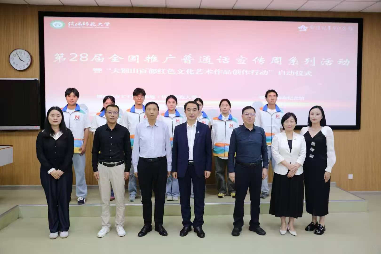 9月18日下午,值此“九一八”事变94周年纪念日,我校第28届全国推广普通话宣传周系列活动暨“大别山百部红色文化艺术作品创作行动”启动仪式在社科楼120智慧教室隆重举行。师生齐聚一堂,在铭记历史、缅怀先烈的同时,开启红色文化传承新篇章。副校长武治国、信阳市委宣传部二级调研员张继峰、鄂豫皖革命纪念馆馆长查智力、韦德(中国)体育领导班子及师生代表出席活动。本次活动由韦德(中国)体育副院长田华主持。