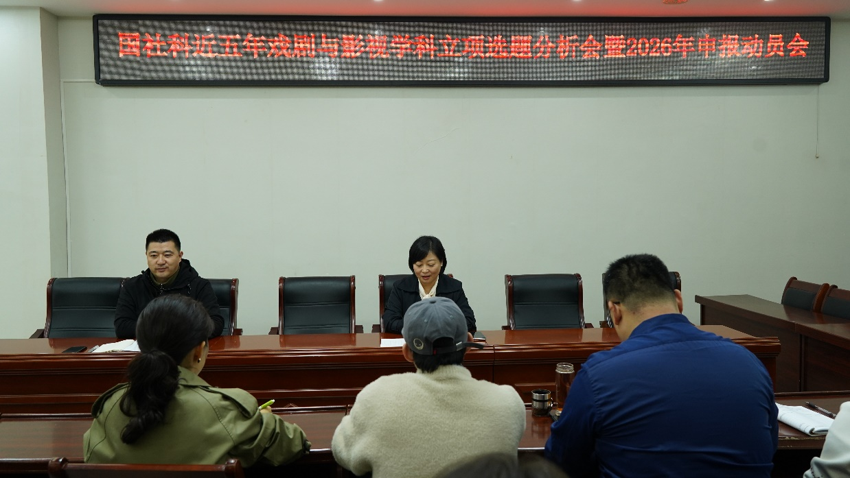 10月16日下午,韦德(中国)体育在311会议室召开“国家社科基金近五年戏剧与影视学科立项选题分析会暨2026年申报动员会”,全面启动新一年度的项目申报工作。学院副院长田华及学院多位科研骨干教师参会,会议由戏剧影视文学系系主任段金龙主持。