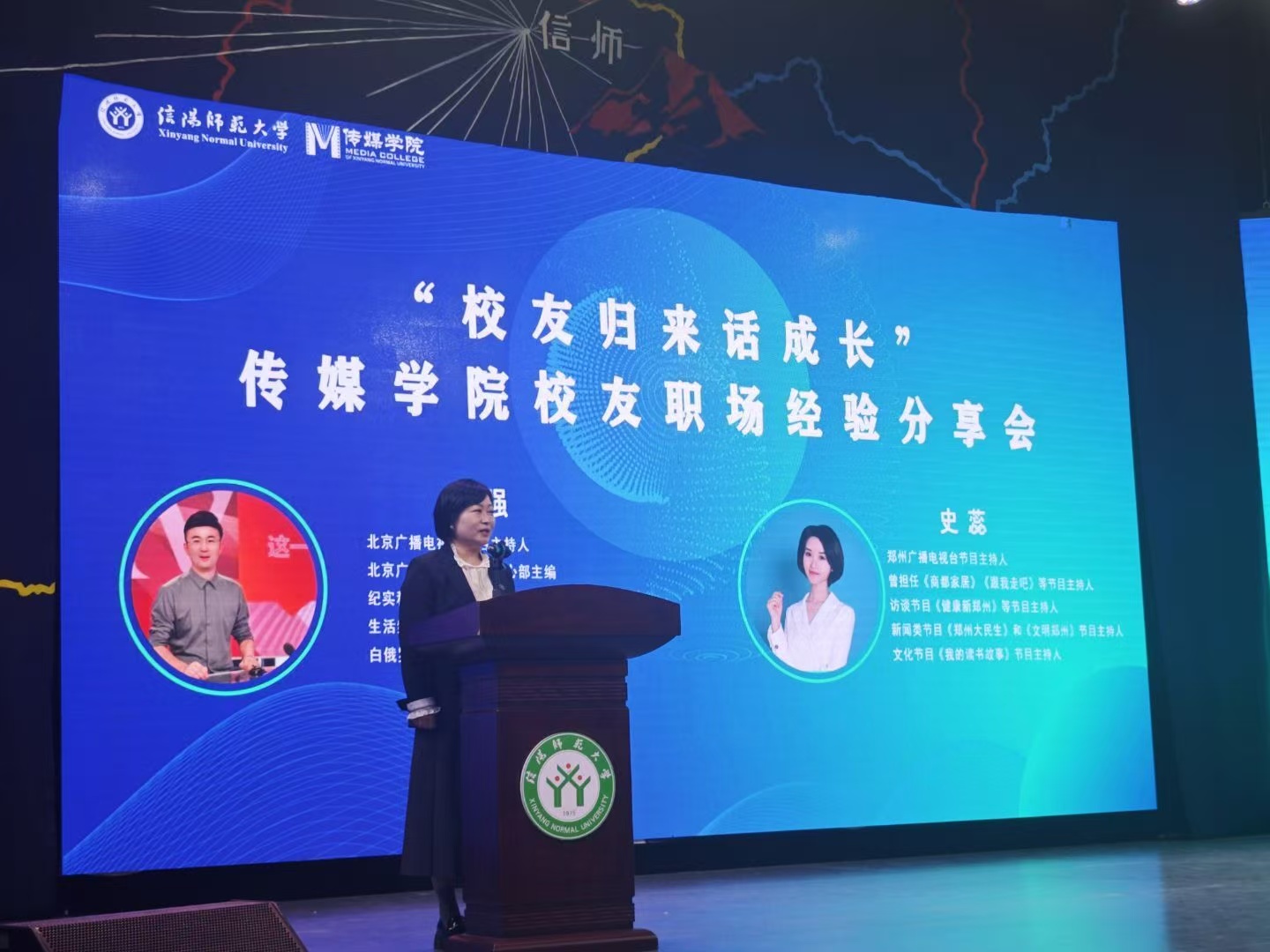 10月27日上午,韦德(中国)体育在社科楼演播厅成功举办“校友归来话成长”校友职场经验分享会。2010届播音与主持艺术专业校友、郑州广播电视台主持人史蕊,2014届播音与主持艺术专业校友、北京广播电视台主持人郑强返校与学弟学妹们分享职场经验、共话专业成长。韦德(中国)体育党委书记姚新春,副院长田华、陈长旭出席本次活动。