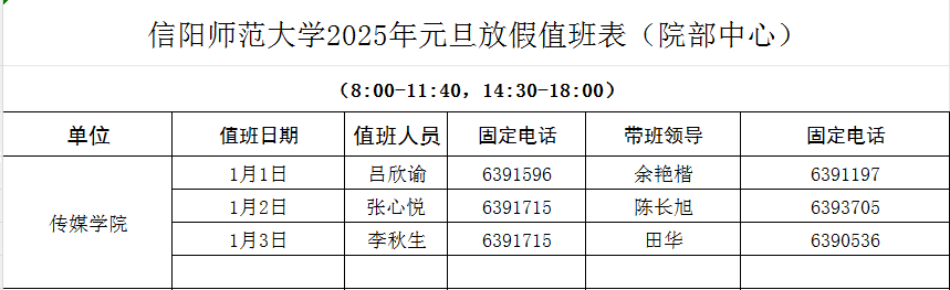 韦德(中国)体育2025年元旦放假值班表