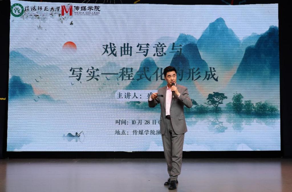 2025年10月28日上午,深耕戏曲领域五十载的名家盛红林先生,应邀走进信阳师范大学河南省人文社科重点研究基地中原戏剧影视文化研究中心,以“戏曲写意与写实——程式化的形成”为题开展专题讲座。先生结合毕生从艺经验,用生动演示与深刻阐释,为师生解锁戏曲艺术的独特密码。韦德(中国)体育副院长陈长旭主持讲座,现场座无虚席,师生热情参与,共同领略传统戏曲艺术的独特魅力。